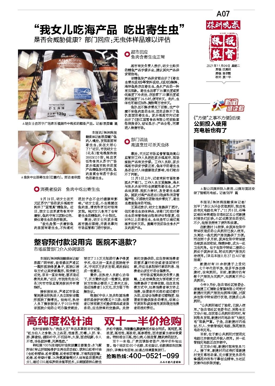 “我女儿吃海产品 吃出寄生虫”