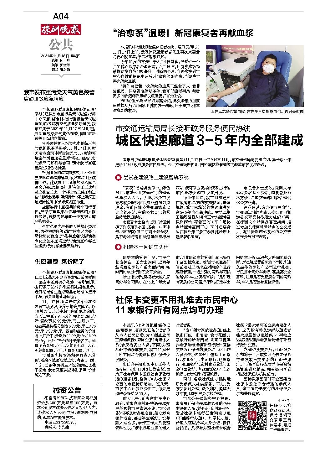2021年11月18日《株洲晚报》