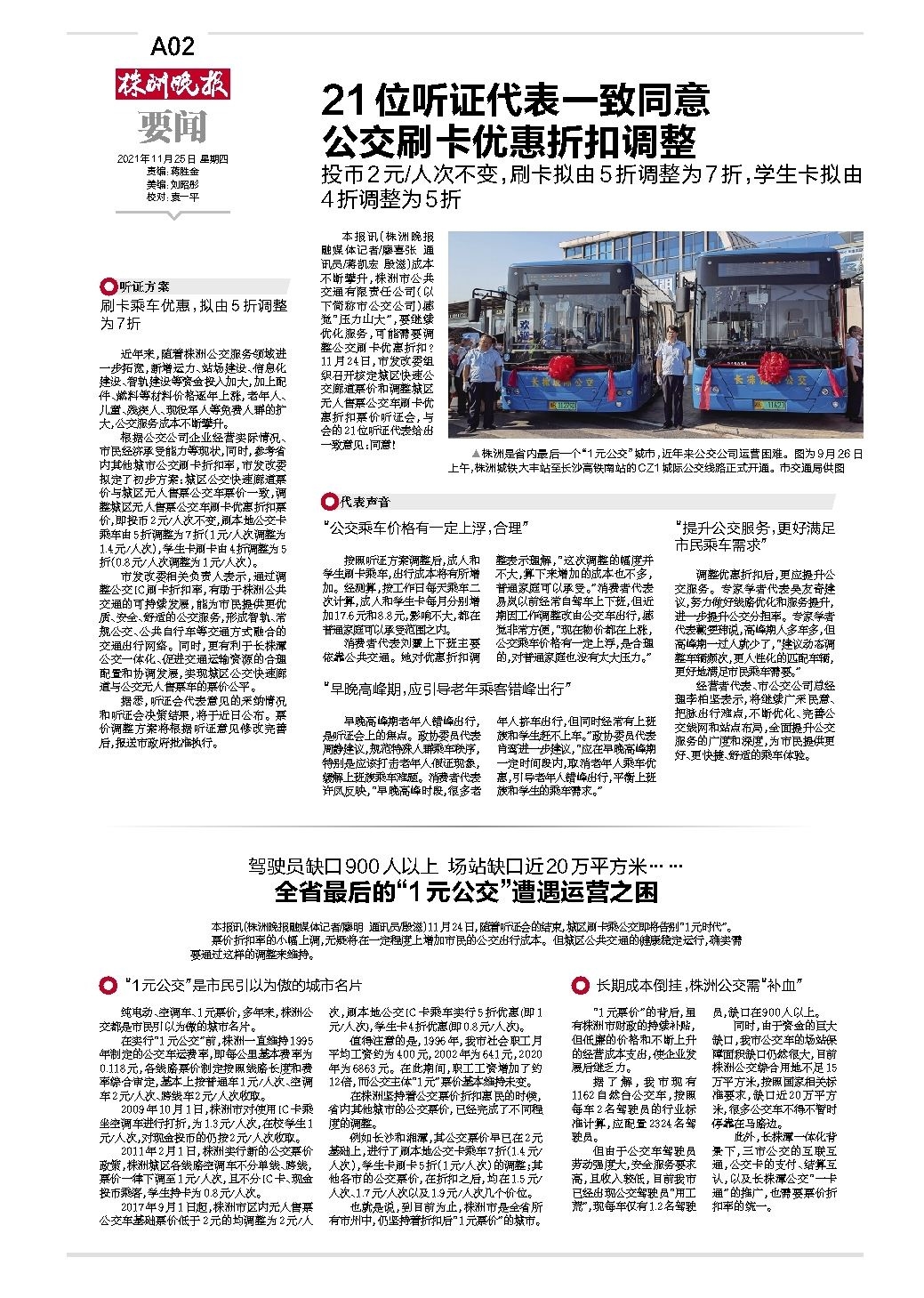 21位听证代表一致同意公交刷卡优惠折扣调整