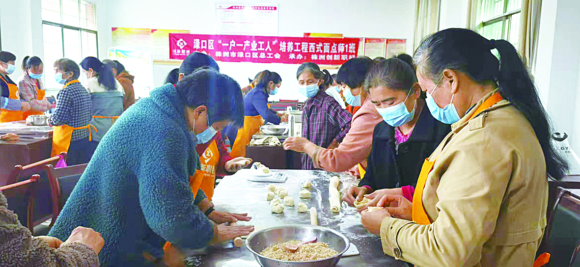 10月26日,渌口区“一户一产业工人”培养工程——西式面点师培训班在渌口镇蛇头村开班,50名村民现场学艺。