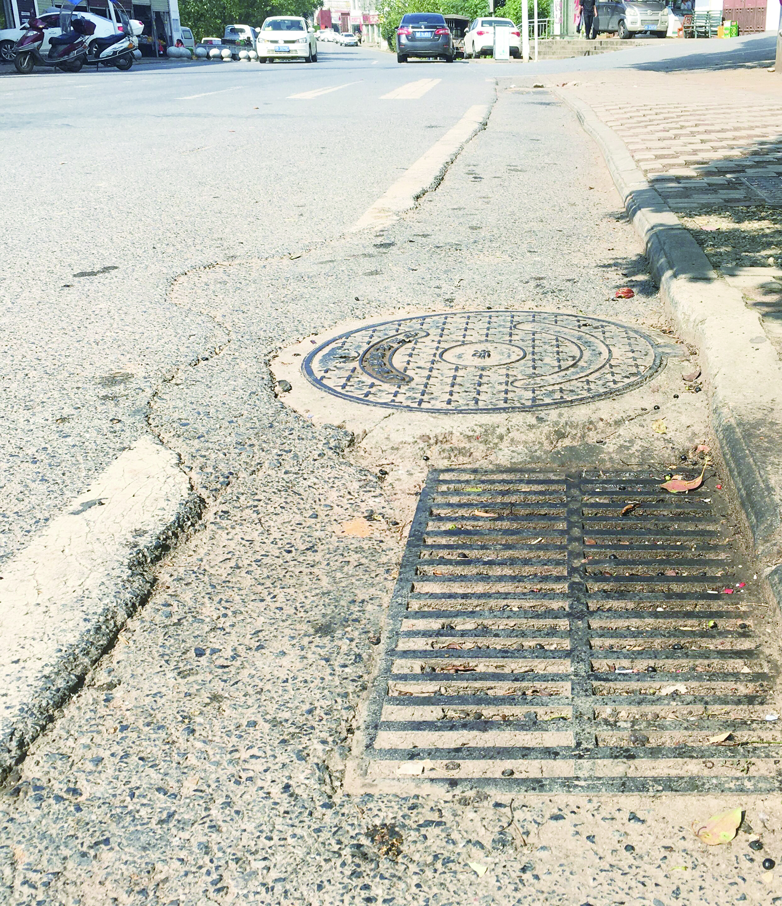“还有一个排水口没堵,万一那个也堵了,下雨肯定会发生内涝。”10月25日,在云龙示范区云田镇,茶马路边的商户对路面排水设施堵塞现象表示担忧。