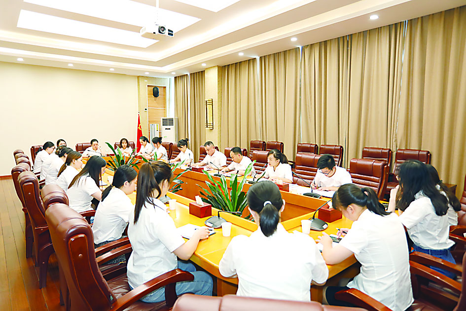 ▲接线员讨论当天工作热点。 通讯员供图