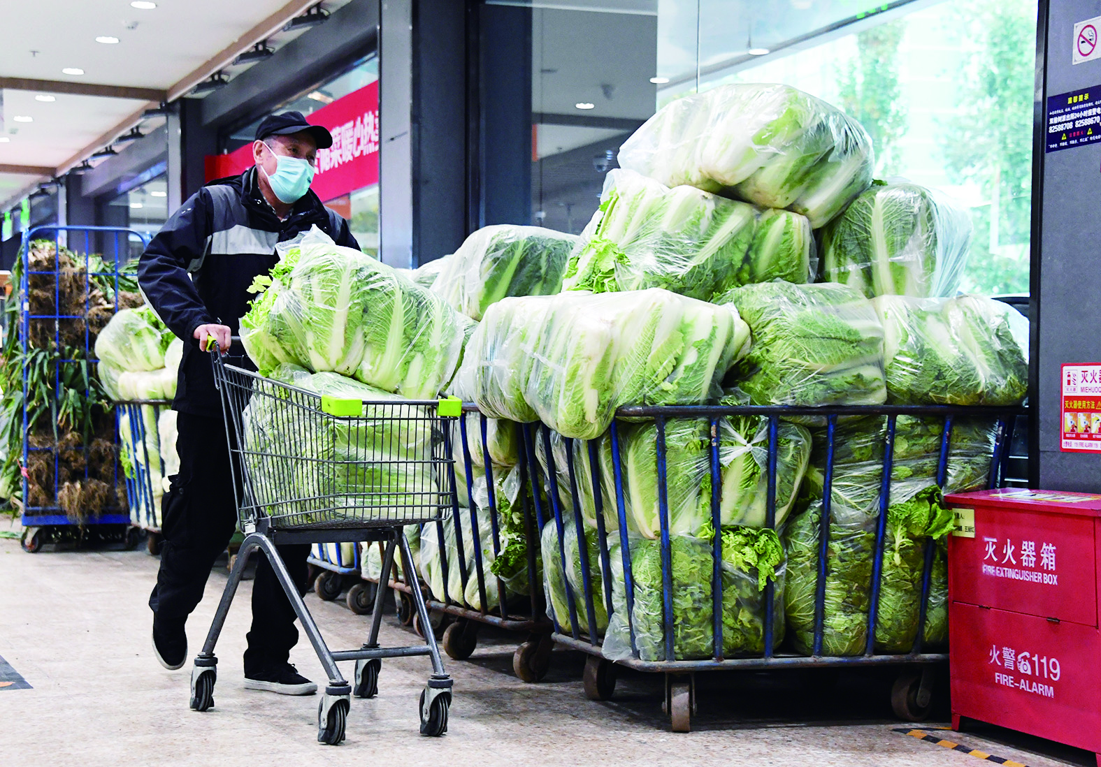 ◀11月2日,北京一市民在超市选购大白菜。新华社记者/任超 摄