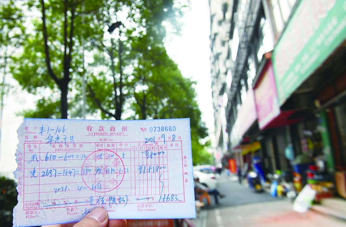 ▲丰园大厦临街商户的电费缴费单,显示为1.32元/度 谢慧 摄