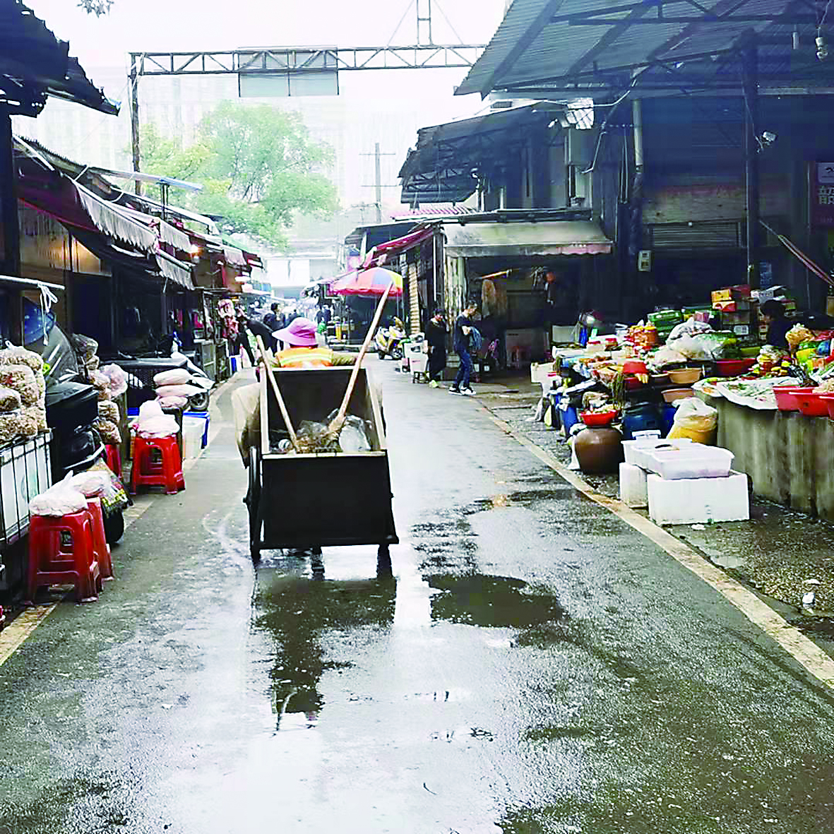 ▲脏乱差的中南蔬菜批发市场。记者/王晖 摄