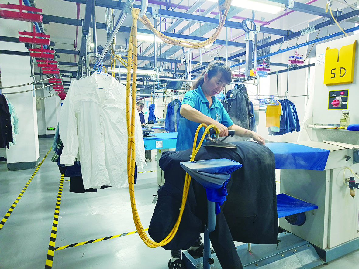 ▶在智能化洗衣工厂,不同面料的衣服,将被送到不同岗位进行差异化熨烫 株洲晚报融媒体记者/成姣兰 摄