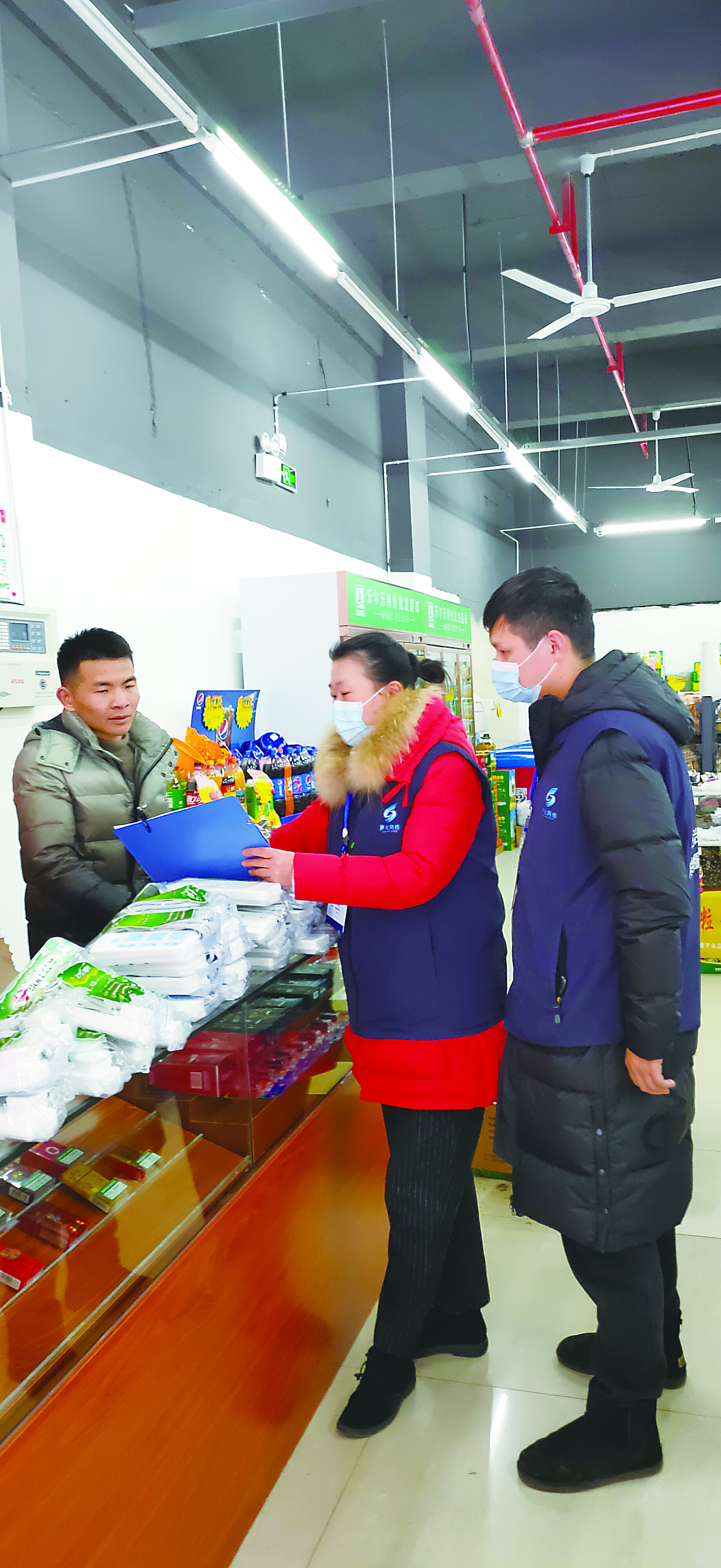 ▲去年疫情期间,李卫婵(中)对辖区门店人员信息进行摸排。 通讯员供图