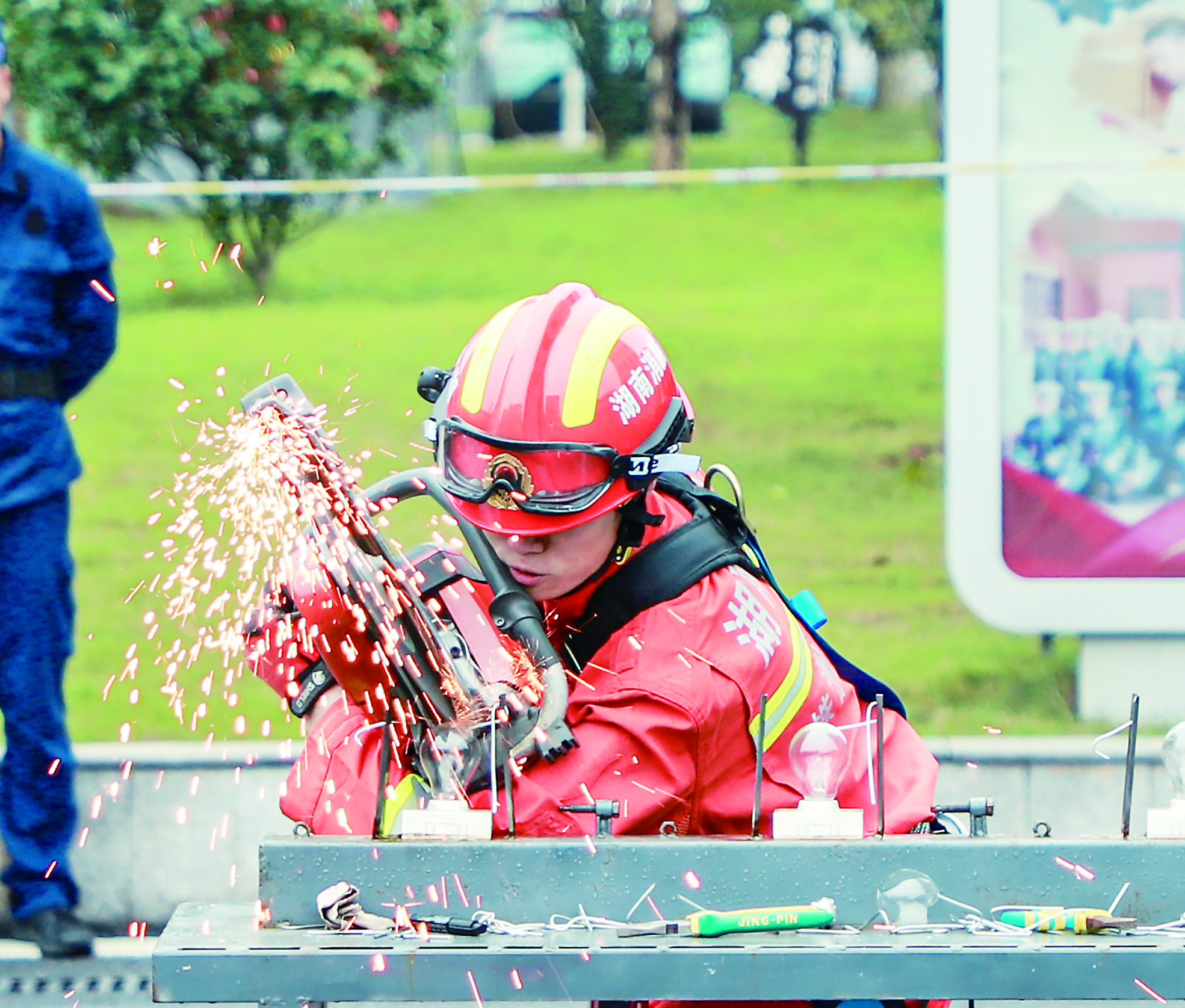 本次竞赛共设灭火战斗员、应急救援员、消防装备维护员、消防设施操作员、消防通信员5个竞赛项目。与往年相比,今年的竞赛科目力求最大程度贴近实战,还格外考验消防员的“细功夫”。例如,在消防装备维护员的竞赛科目中,消防员需要手扛数十公斤的切割机,在鸡蛋上划开一道不到1毫米的口子,考验器材熟练程度。