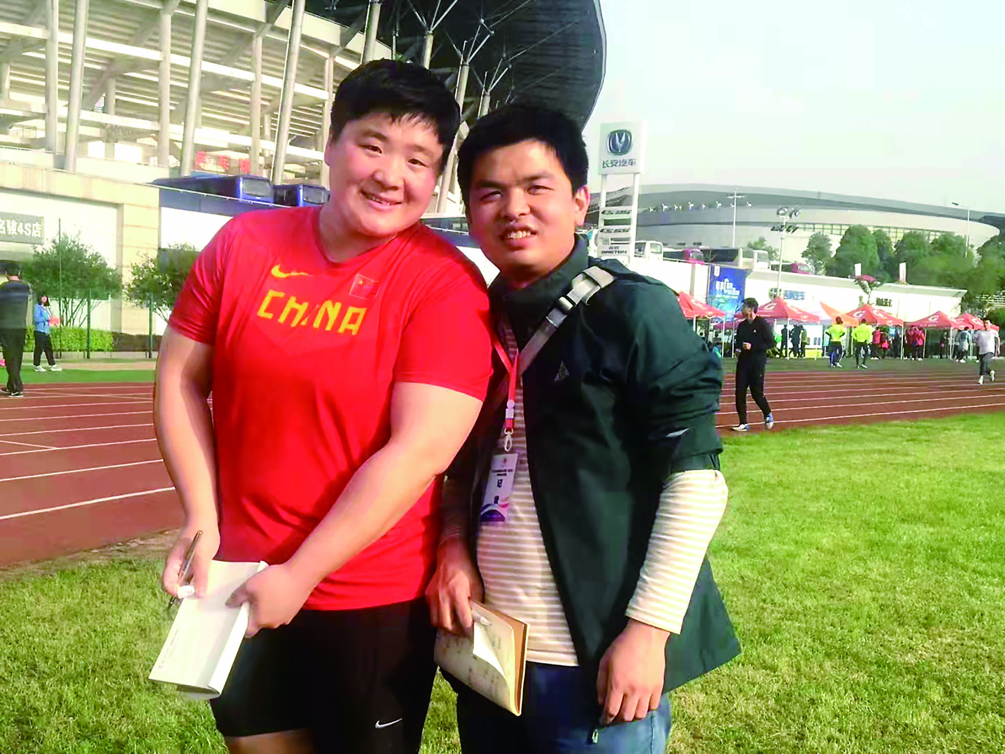 ▲记者温林(右)与东京奥运会冠军巩立姣合影。