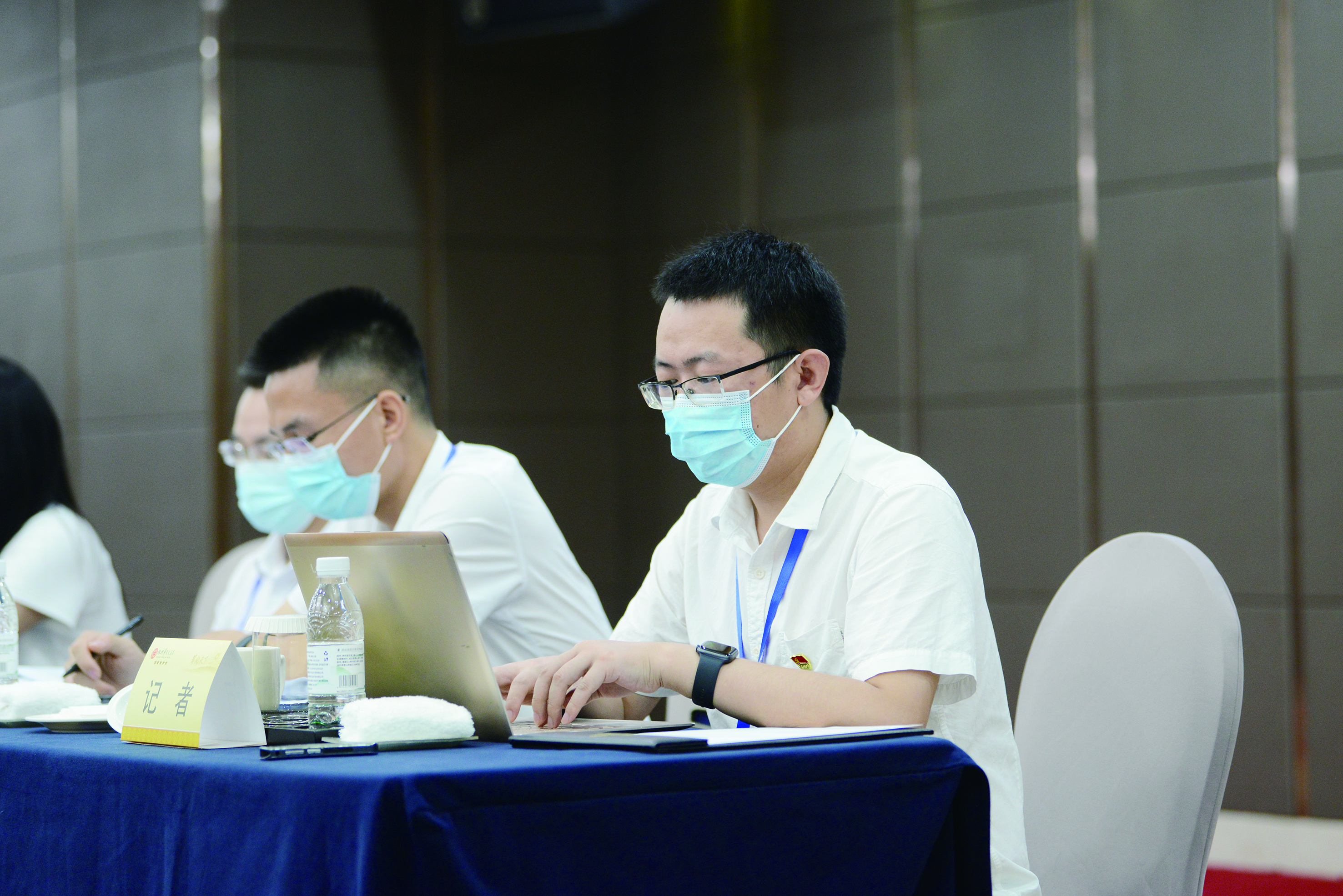 ▲记者陈正明(右一)在参加市第十三次党代会代表团讨论。