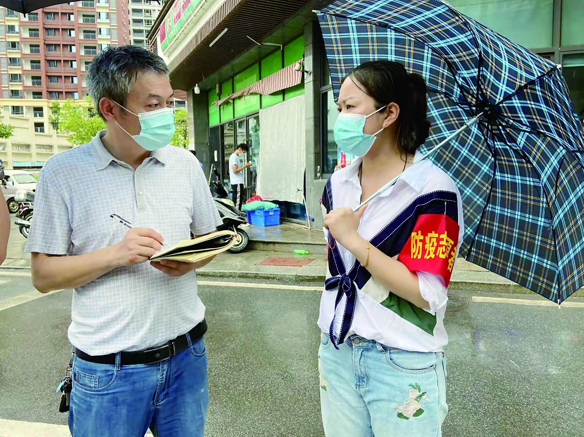 ▲2021年8月,疫情期间,记者李逸峰(左)在封控小区——云龙示范区学林街道学府华庭小区采访。