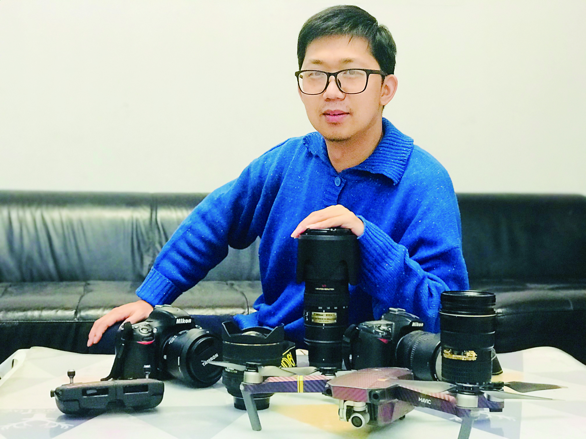 无人机兴起,戴凛更是早一批尝鲜者。对于新闻的表达不再满足于图片,视频成功勾起了他的兴趣。“遇到大型活动,我会挎两个相机,再背一台无人机,加起来有10多斤。”戴凛笑言,“感觉自己在逃难。”
