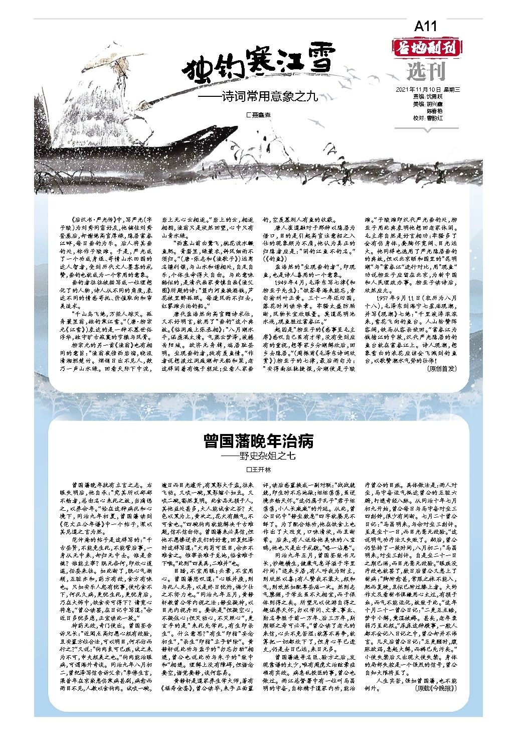 “千山鸟飞绝,万径人踪灭。孤舟蓑笠翁,独钓寒江雪。”(唐·柳宗元《江雪》)表达的是一种不慕世俗浮华,独守旷古寂寞的节操与风骨。
