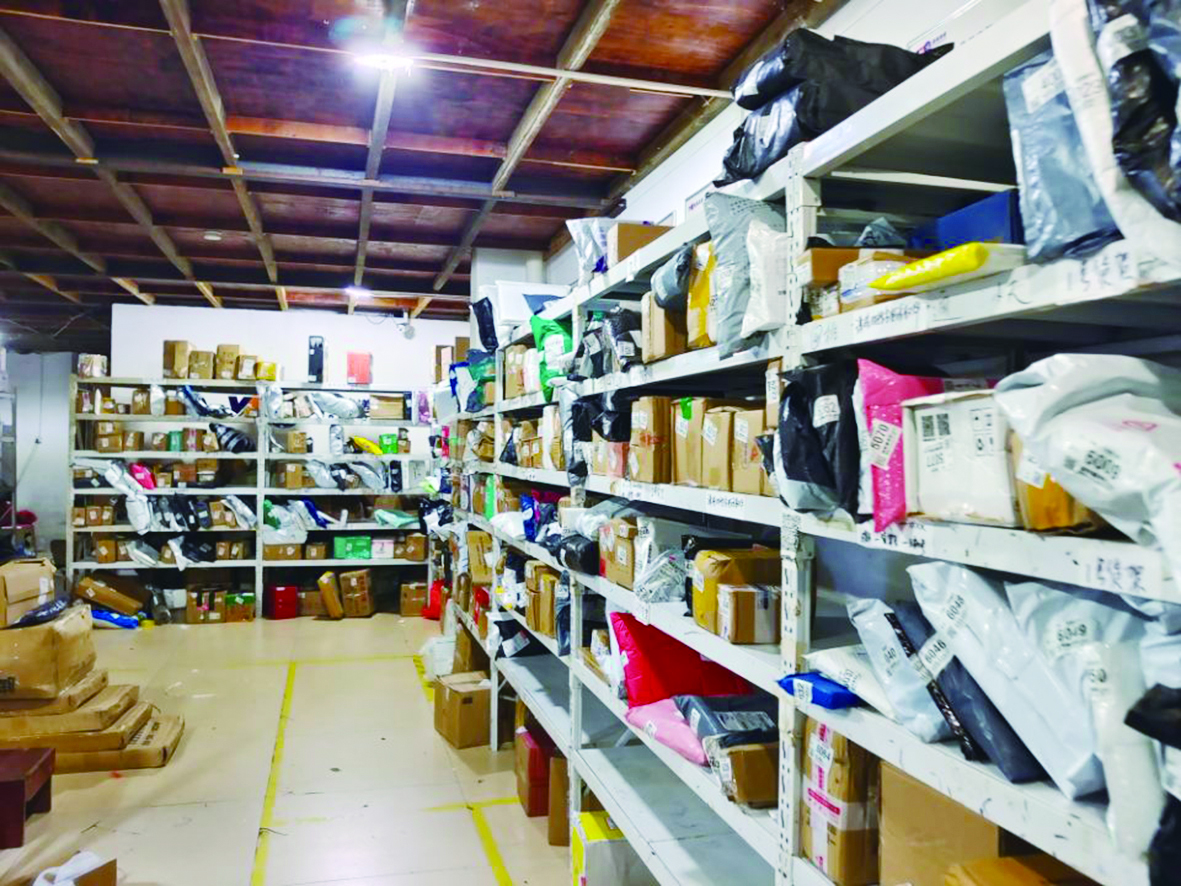 ▲天元区颐景园小区内一家菜鸟驿站的货架上摆满了包裹。 记者/何春林 摄
