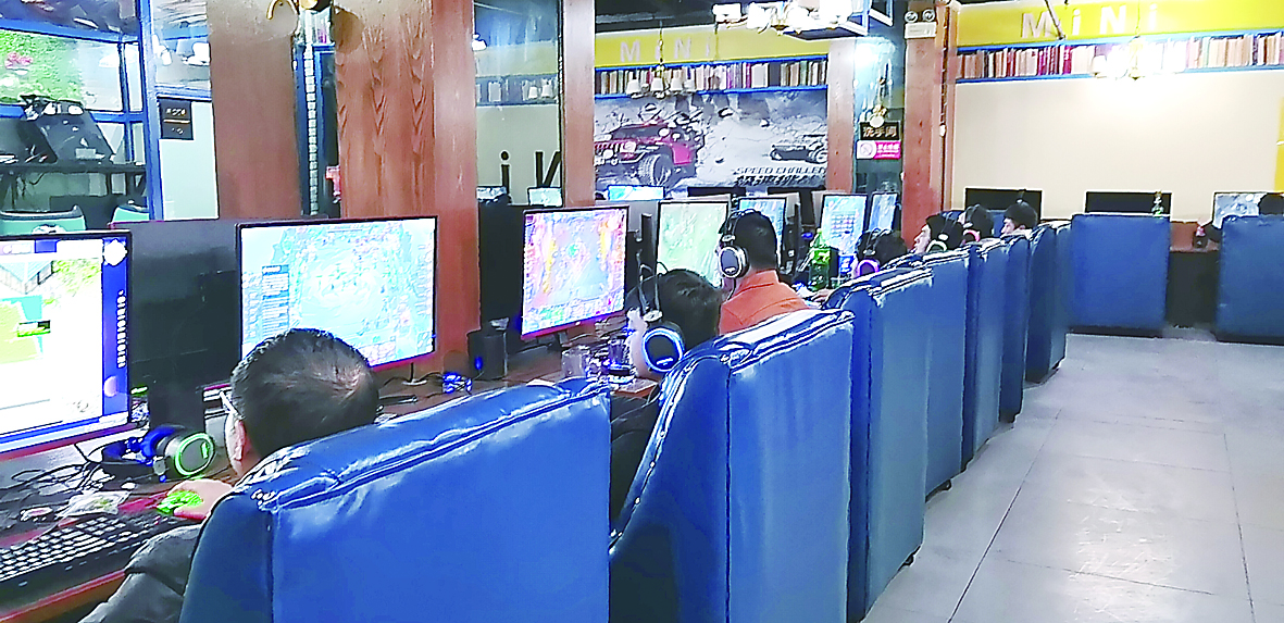 ▲天元区某网吧内,年轻人正在打游戏。 记者/陈驰 摄