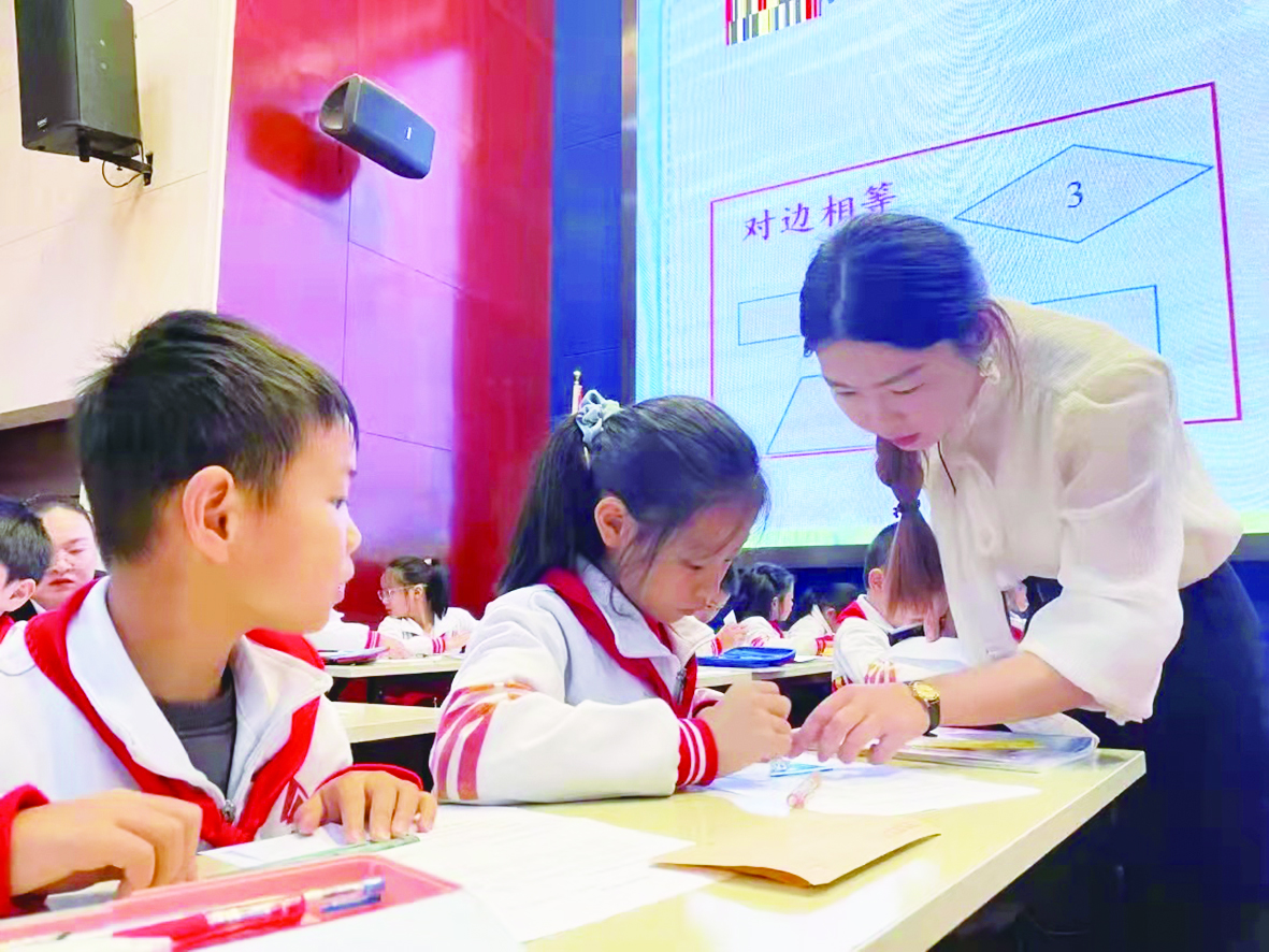 汤鹏把操作、概念理解、表达数理有机地结合起来,通过动手操作,让学生形象直观地推导平行四边形的公式。“既学得高兴又充分理解了知识。”孩子们兴奋地说。