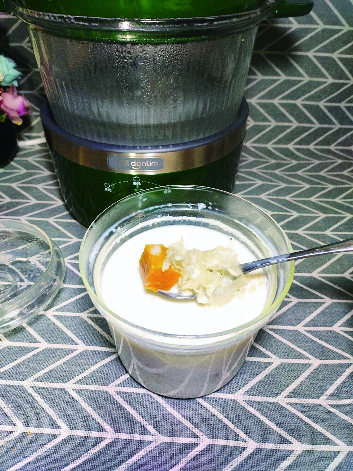 做法:准备银耳1大朵(约10g)、南瓜250g、牛奶250mL(2至3人量)。南瓜洗净切块,银耳提前浸泡,把这两种材料加入瓦煲中,再加入清水1500mL,大火煮开后转小火煲约1小时,最后倒入牛奶稍煮开,加少量冰糖调味即可食用。