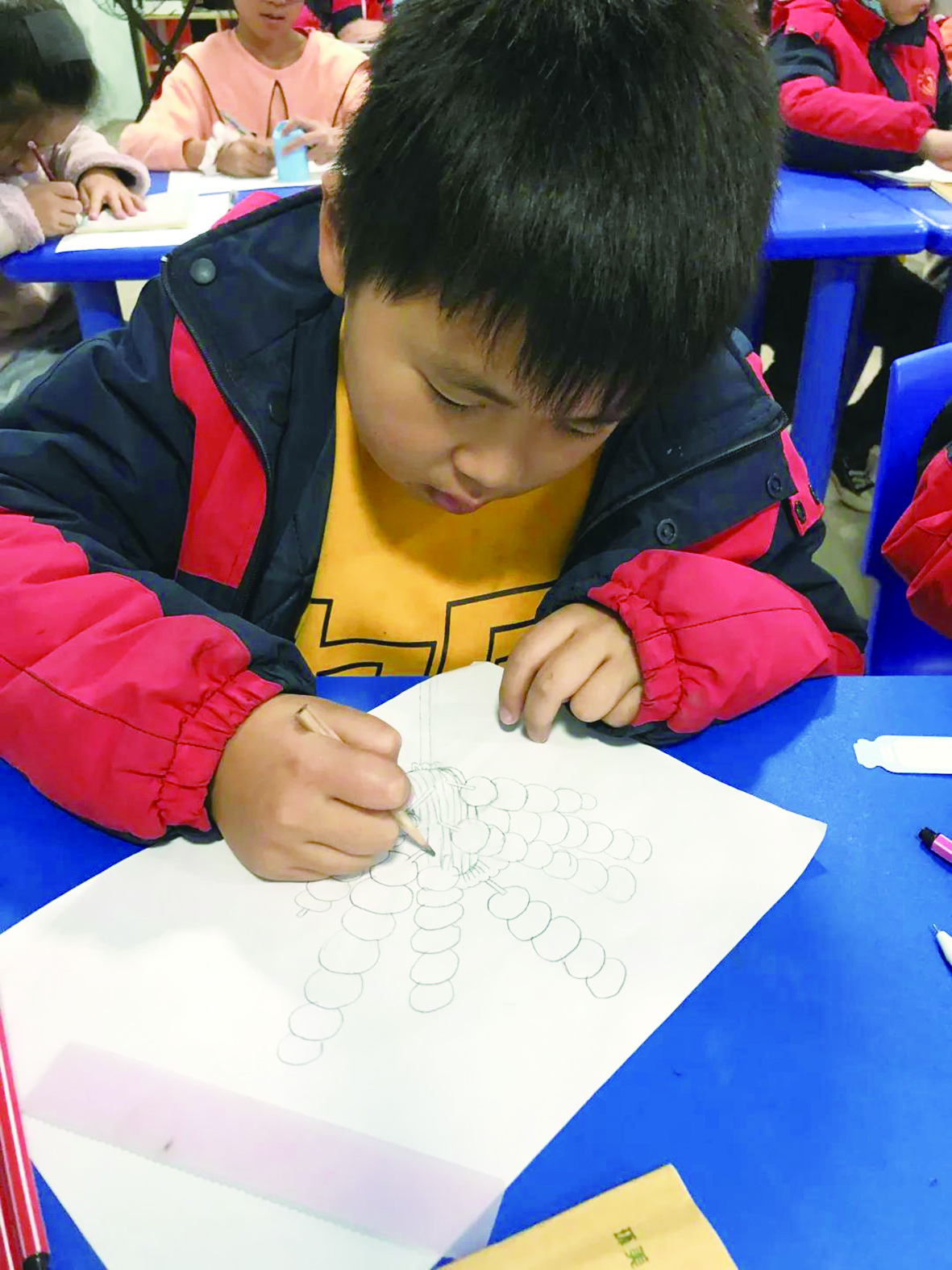▲孩子们在画冰糖葫芦。 通讯员/刘明媚 摄