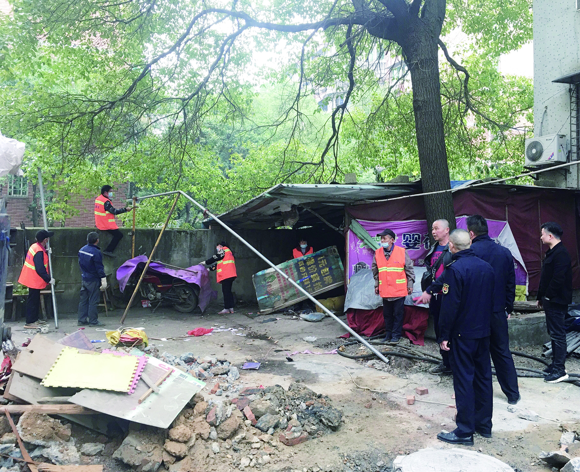 ▲搭建物被拆除。 记者/刘平 摄