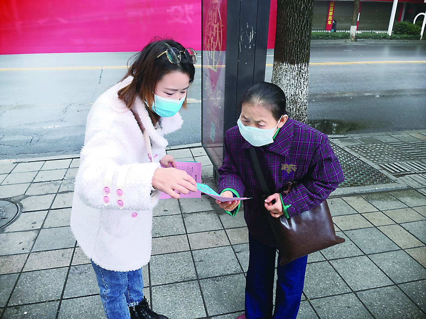 ▲张格(左)在为居民讲解国家政策。通讯员供图