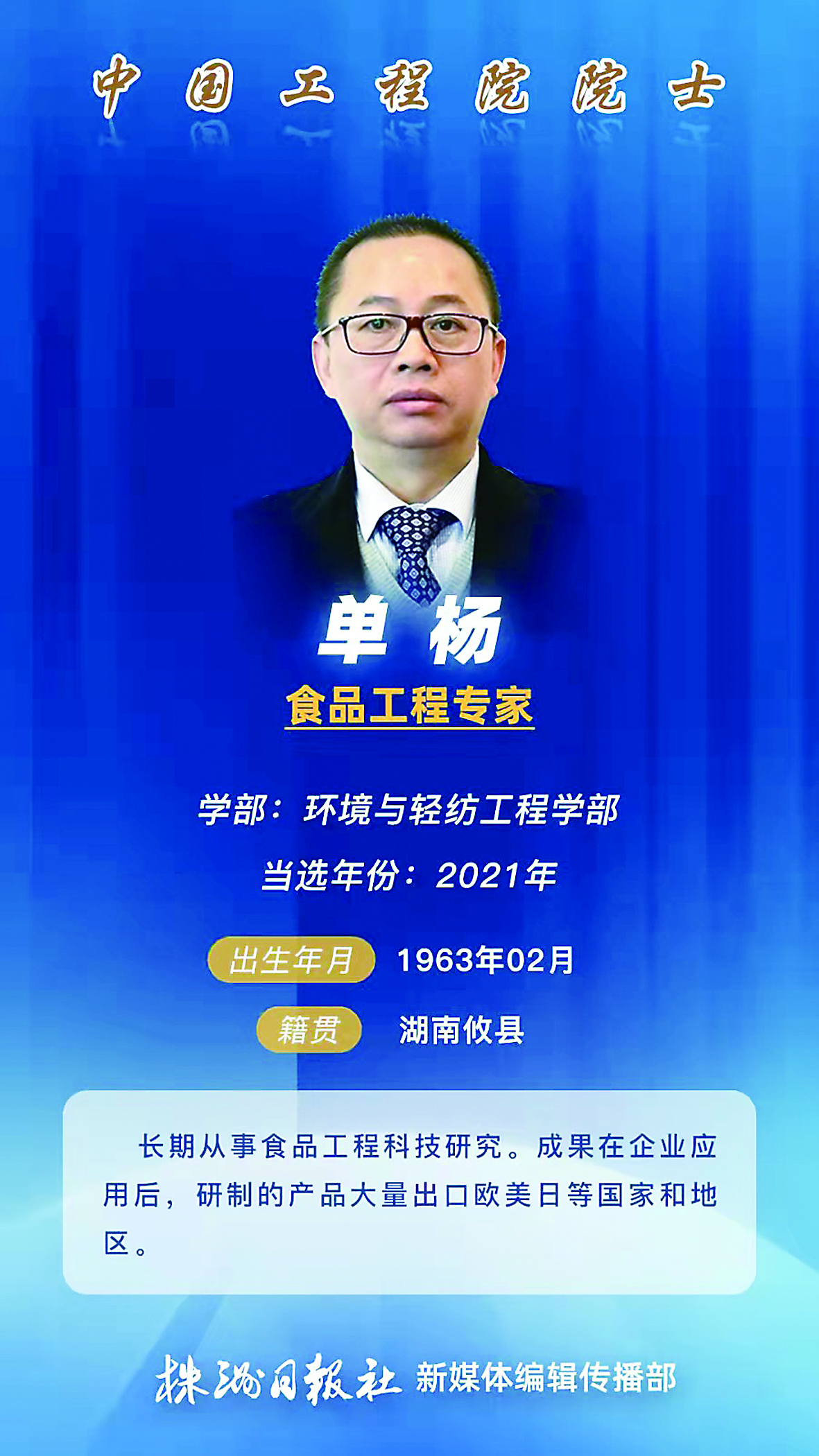 11月18日,备受关注的2021年两院院士增选结果揭晓,共有149人当选。其中,攸县籍专家单杨与王双飞当选中国工程院院士。至此,株洲籍院士增加至7人。此外,还有3位院士,长期或曾经在株洲工作生活。他们都是株洲的骄傲。