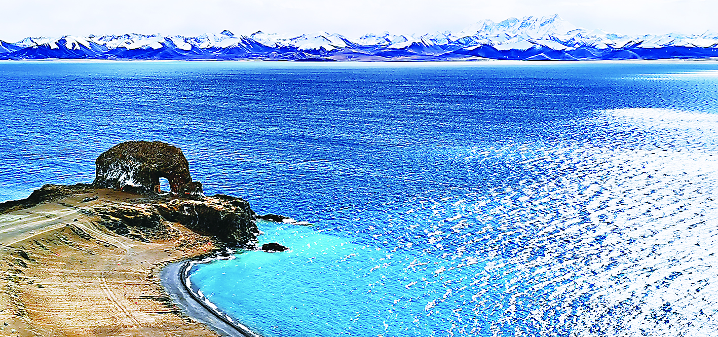 圣象天门位于西藏那曲市班戈县境内,与念青唐古拉雪山、纳木错湖构成鬼斧神工的高原奇幻景观。图为11月20日拍摄的纳木错圣象天门(手机照片)。 新华社记者/沈虹冰 摄