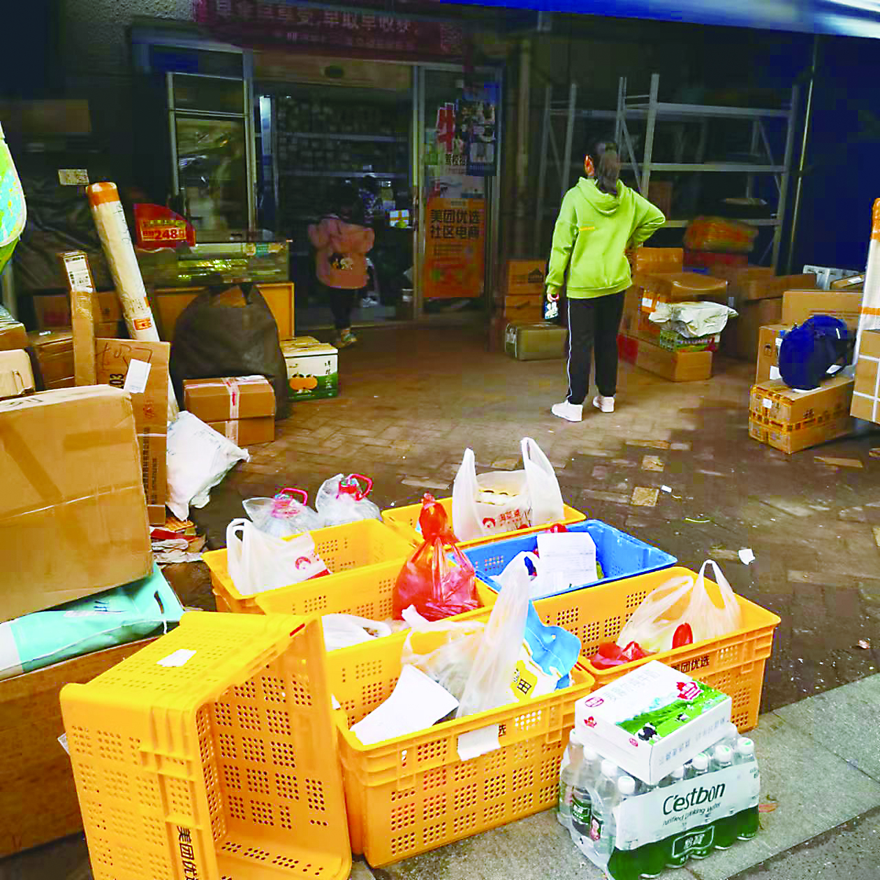 这种手段,正是美团当年占领客户手机端的成功手法。不过这一次被电商用到了生鲜售卖市场。而且电商打着贴补的旗号,通过赠送各种花样繁多的优惠券,把客户牢牢锁定。他们也发展了很多的社区团购团长,以很小的返佣来为他们吸引消费者。比如玫瑰名城门口的阳小姐,成了社区团购的团长,每天都至少有几十人到她的提货点提货。而一百米外的菜鸟驿站,也是类似的提货点,每天至少有上百人通过手机APP买菜,生意十分兴隆。短短的玫瑰路,不到两百米的路段,就有三家提货点,确实非常方便。