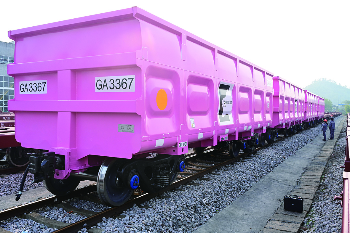 ▲中车株辆公司为澳方公司定制的“小粉粉”铁路矿石敞车。企业供图