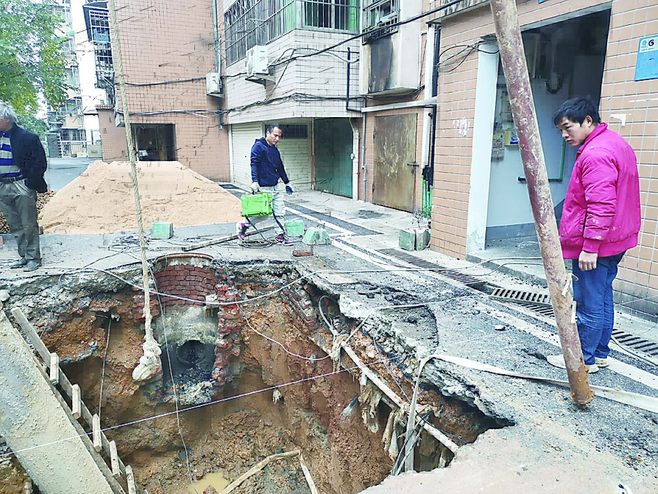 ▲银苑小区正在施工中的电梯基坑。 记者/成姣兰 摄