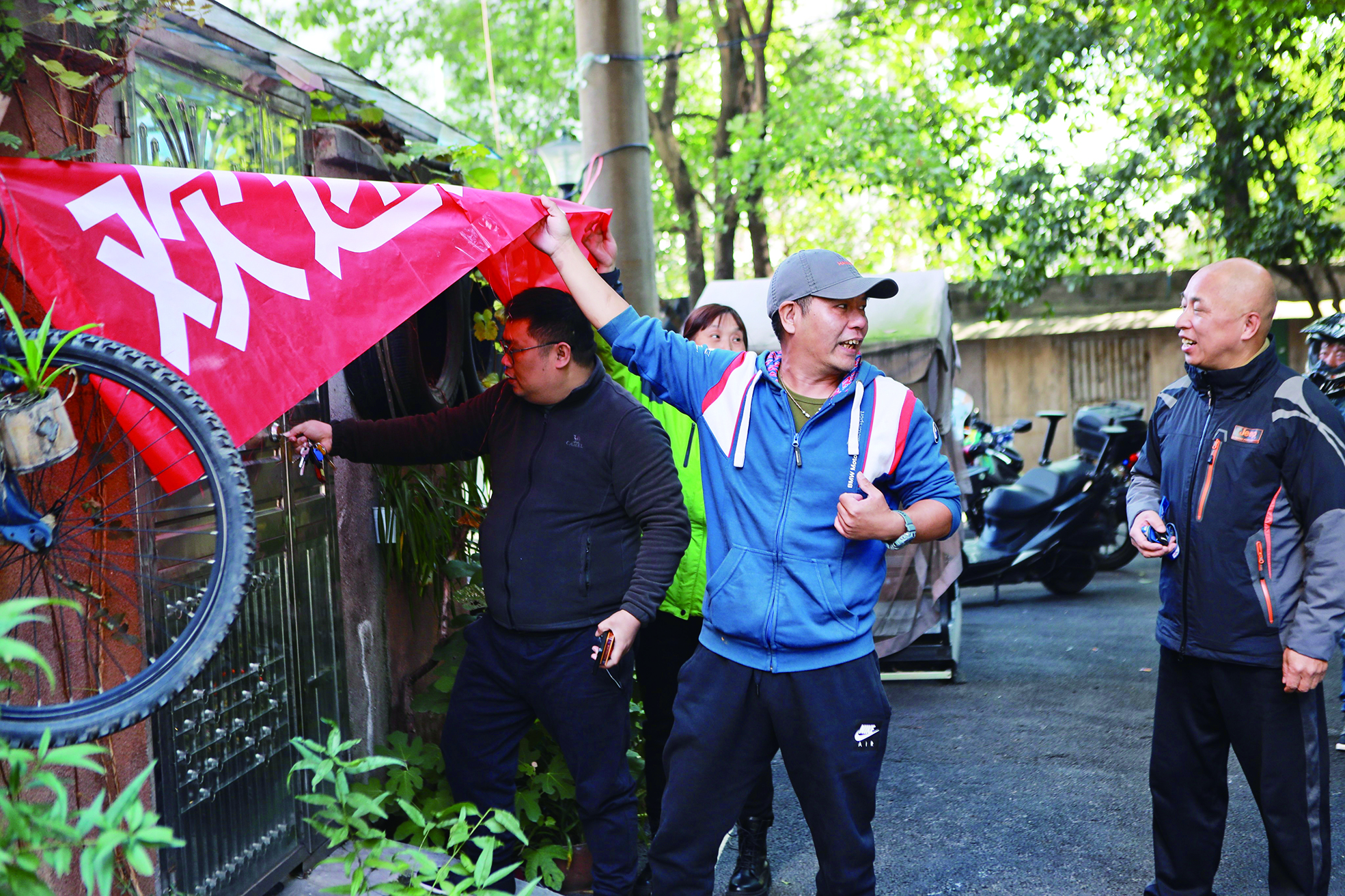 这些好友是贺湘闽的骑友,大家特地骑着摩托车来此迎接。一番叙旧后,骑友们在前面开道,贺湘闽开着面包车紧随其后。上午11时左右,一行人到达了贺湘闽的家中。