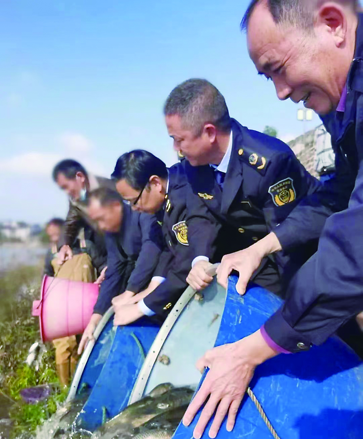 本报讯(株洲晚报融媒体记者/贺天鸿 通讯员/易宇)11月23日上午,茶陵县人民法院联合农业执法部门依法对两起非法捕捞水产品案的被告人执行增殖放流,共计放流鱼苗328斤。 谭某明和陈某云于今年上半年在洣江河段,使用电鱼工具捕鱼。法院审理认为,两被告人禁渔期间在禁渔区域使用禁用的方式捕鱼,破坏渔业生态环境和渔业资源,损害了社会公众利益,依法构成非法捕捞水产品罪,应对渔业生态进行修复。 今年以来,茶陵县法院已经依法审结11件非法捕捞水产品案件。增殖放流之后,县人民法院工作人员在洣水附近开展环保宣传活动,向附近居民宣传环保知识,号召村民保护洣水生态环境,严禁电鱼、毒鱼、炸鱼等违法犯罪行为。 ▲放流现场。通讯员供图