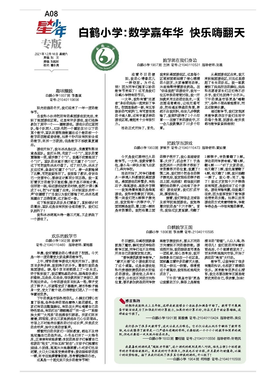 白鹤小学:数学嘉年华 快乐嗨翻天