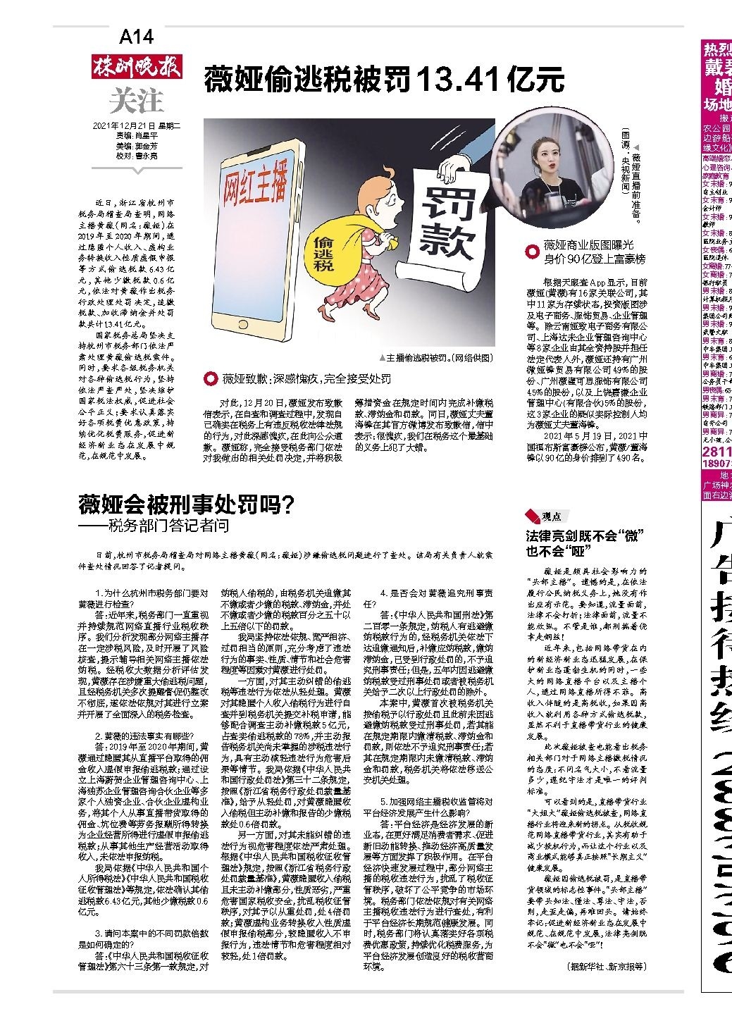 薇娅偷逃税被罚13.41亿元