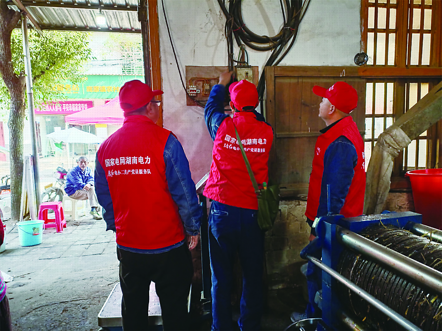 ▲国网炎陵供电公司共产党员服务队对茶油加工厂用电设备进行“把脉问诊”。通讯员供图
