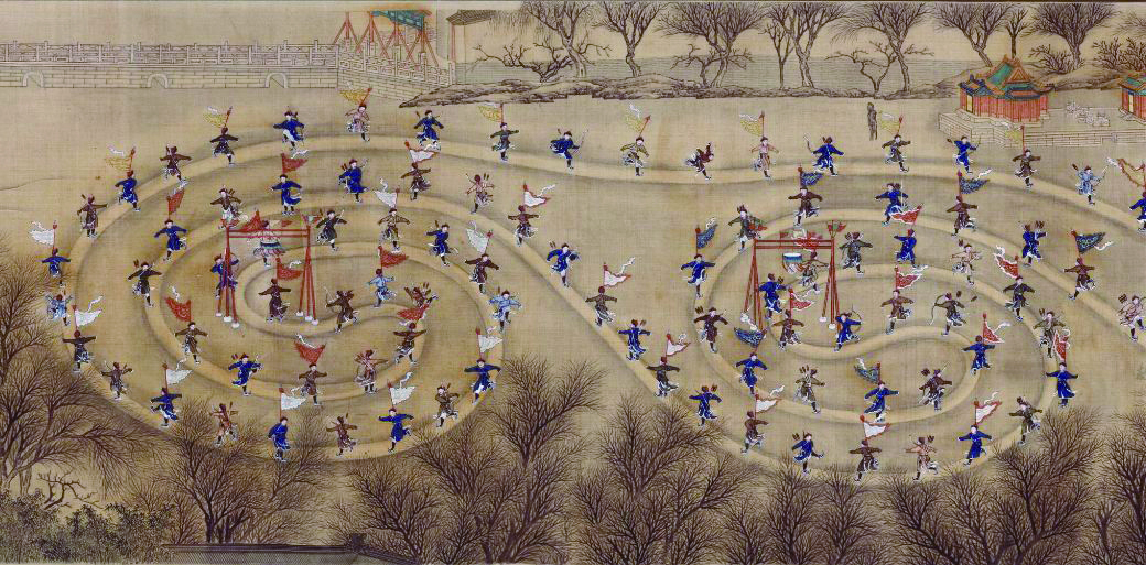 ▲《冰嬉图》局部(清 乾隆 张为邦、姚文瀚,现藏故宫博物院)