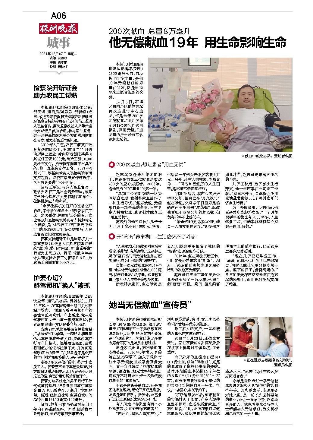 本报讯(株洲晚报融媒体记者/易楚曈)2400毫升全血、血小板381治疗量,是他19年无偿献血的总量;121次,则是他13年来志愿者服务的次数。