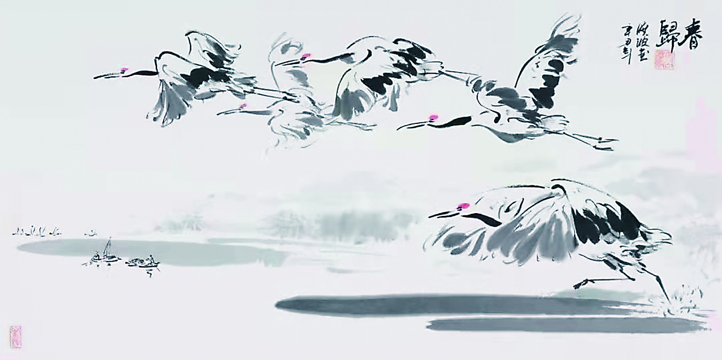 鲁晓波说,鹤是一种儒雅、廉洁、高尚的象征,承载着中华民族儒雅高洁的精神期冀,此次展览的国画作品,承载了他对家乡父老乡亲的深情厚谊,也有自己对生态环境的美好向往。