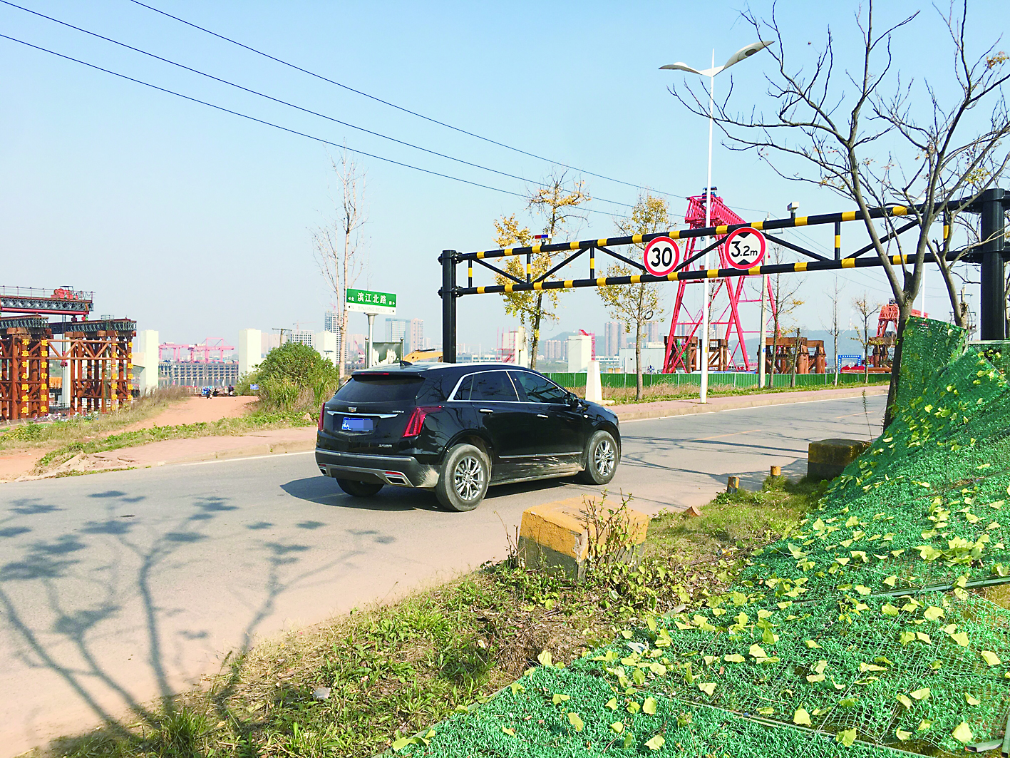 设置限高杆的路段紧挨清水塘大桥项目建设工地,清水塘大桥将从该路段上空跨过。据了解,两座限高杆是因该路段清水塘大桥建设施工而设立,过往车辆要减速慢行,超高车辆要绕行。