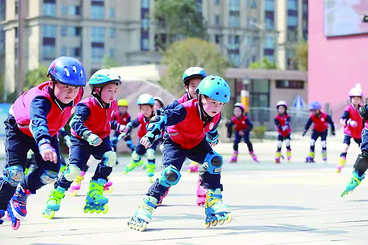 昨日,中央电视台第五套和第十三套《冬奥来了》节目中,株洲市二中附小轮滑队惊艳亮相4分钟,镜头记录了该校开展轮滑运动的点点滴滴。昨日,该校学生钟雨泽代表株洲参加全省比赛,荣获第五名。近期,该校轮滑队将前往吉林长春,参加北京冬奥会的暖场比赛。图为市二中附小的孩子们正在进行轮滑训练。(株洲晚报融媒体记者/王晖 通讯员/徐桔 摄影报道)