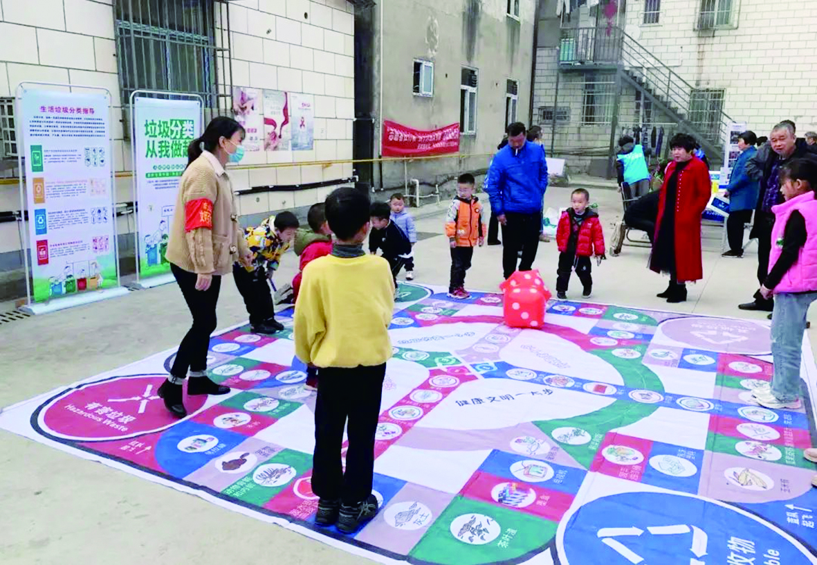 ▲社区孩子参与垃圾分类飞行棋游戏活动。(志愿者供图)