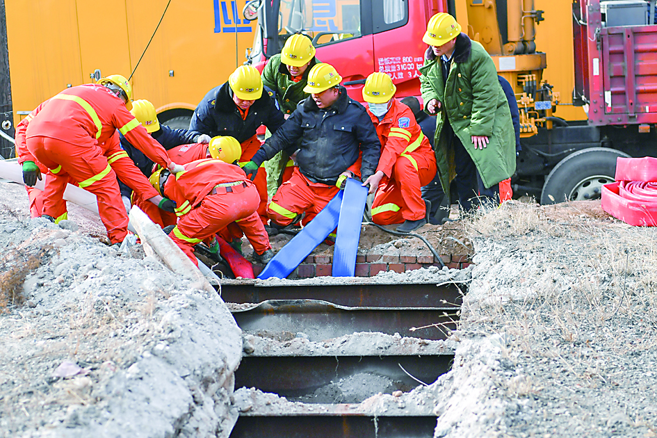 12月15日23时许,孝义市西辛庄镇杜西沟村发生一起非法盗采煤炭资源案件,引发透水致人员被困。经进一步核查,透水致井下21人被困。目前现场已按照抢险救援方案全力开展救援工作,井下排水有序进行,水位开始下降。案件侦破工作同步展开,公安机关已控制6名涉案人员,正在全力追捕其他涉案人员。被困人员情况仍在继续核查。 图为12月16日在山西省孝义市西辛庄镇杜西沟村拍摄的救援现场。