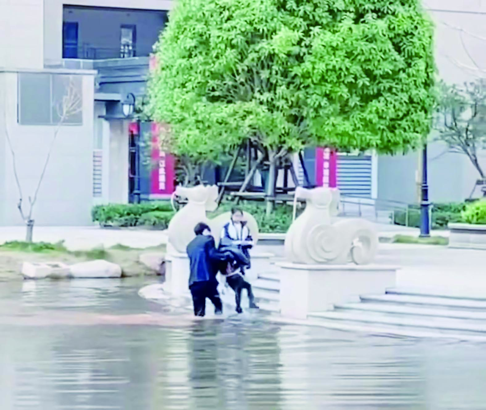 “快来救人,有人掉水里了!”突然,尹侠义听到一名小女孩的呼救声,他赶忙终止拍摄,迅速朝女孩的方向跑去,只见景观池里有名男童,离岸边两三米远,水有五六十公分深,身子翻身朝下,双手在水面上挣扎。