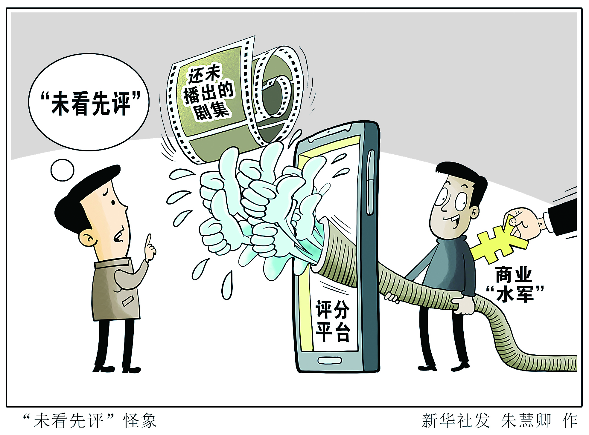 这两部网络剧集,一部有流量明星出演的古装剧比“官宣”时间晚上线一小时,却有大批评分提前涌入了平台;在另一部同样有当红演员出演的悬疑网剧中,女演员还未在剧中登场,平台上已经出现大量对其演技质疑的评价。业内人士指出,这些违背“先看后评”原则的非正常评分背后,多数是“水军”弄虚作假的手笔,这些“水军”已成影视行业健康发展的毒瘤。