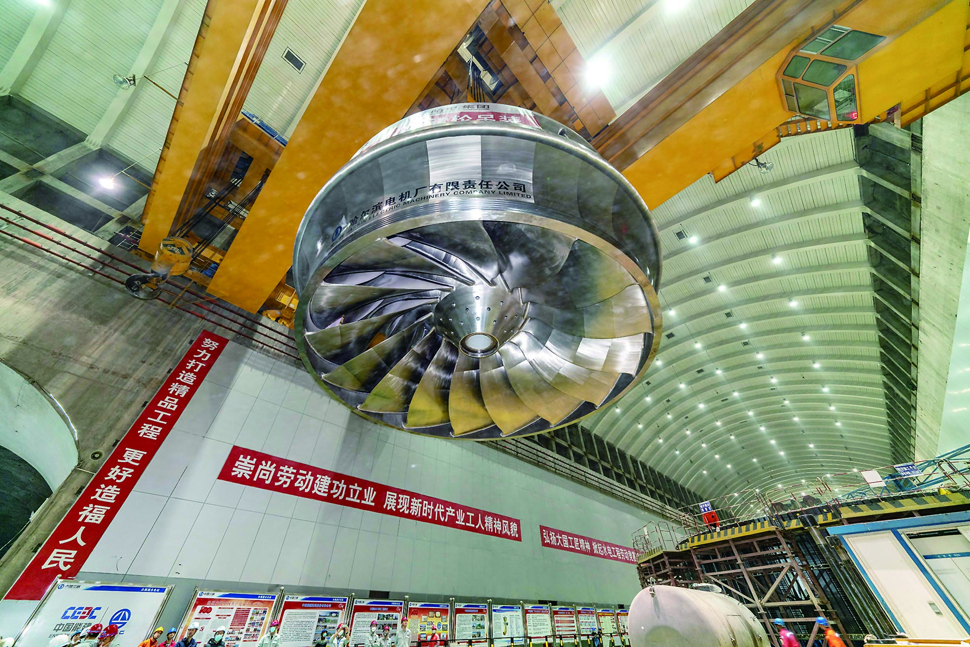 图为9号水轮发电机组转轮吊装现场(12月19日摄)。