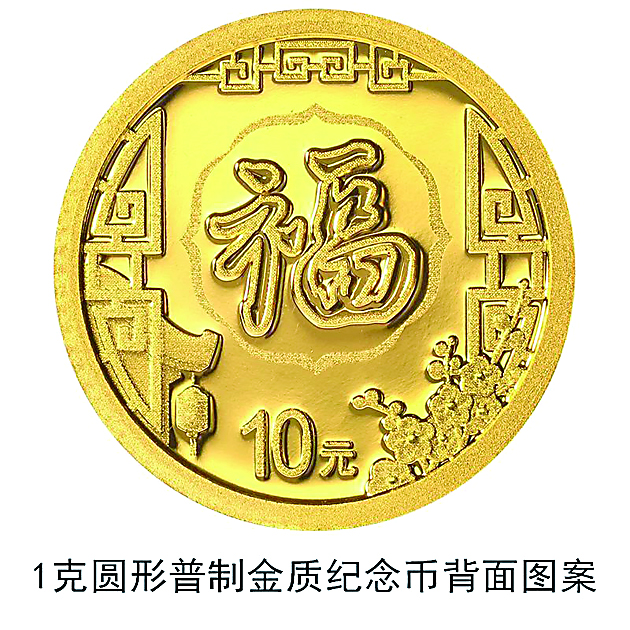 该套金银纪念币正面图案均为中华人民共和国国徽,并刊国名、年号“2022”。背面图案各有不同,1克圆形金质纪念币背面图案为明代文徵明的“福”字造型,配以窗格、梅花、民居房檐等造型组合设计,并刊面额。8克圆形银质纪念币背面图案为明代文徵明的“福”字造型,配以窗格、剪纸团花、喜鹊、梅花、民居房檐等造型组合设计,并刊“壬寅”字样及面额。