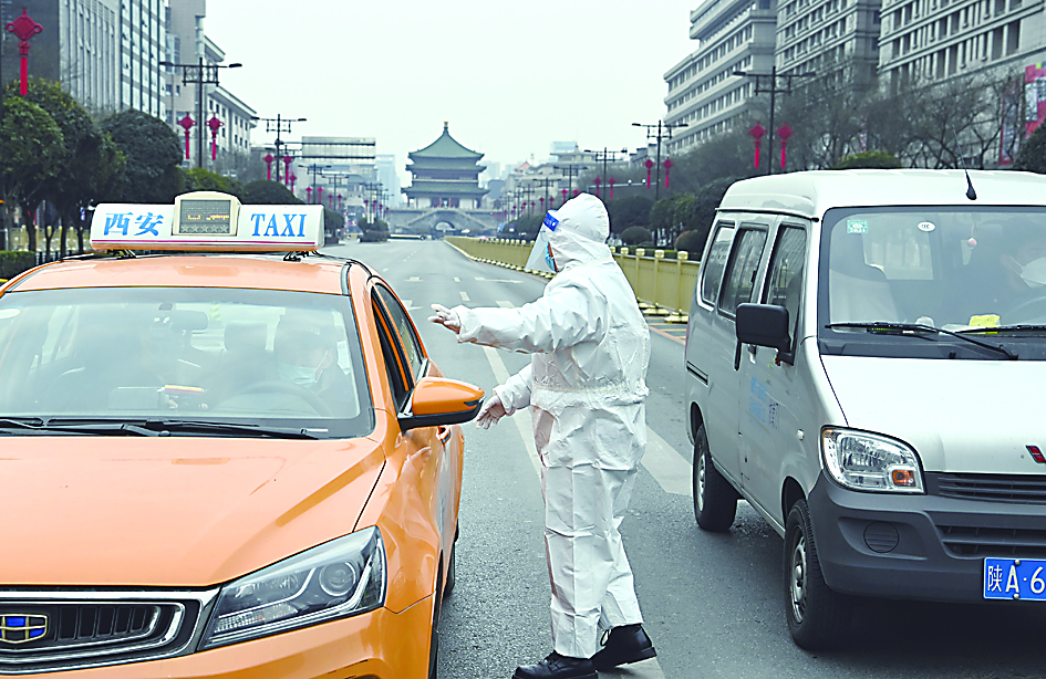 ▶12月27日,民警在西安市北大街检查车辆。新华社记者/陶明 摄