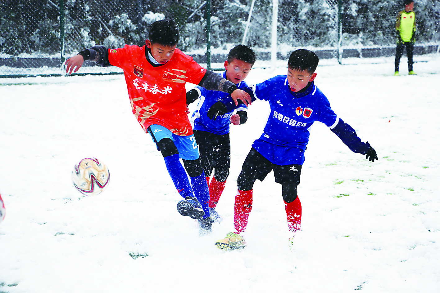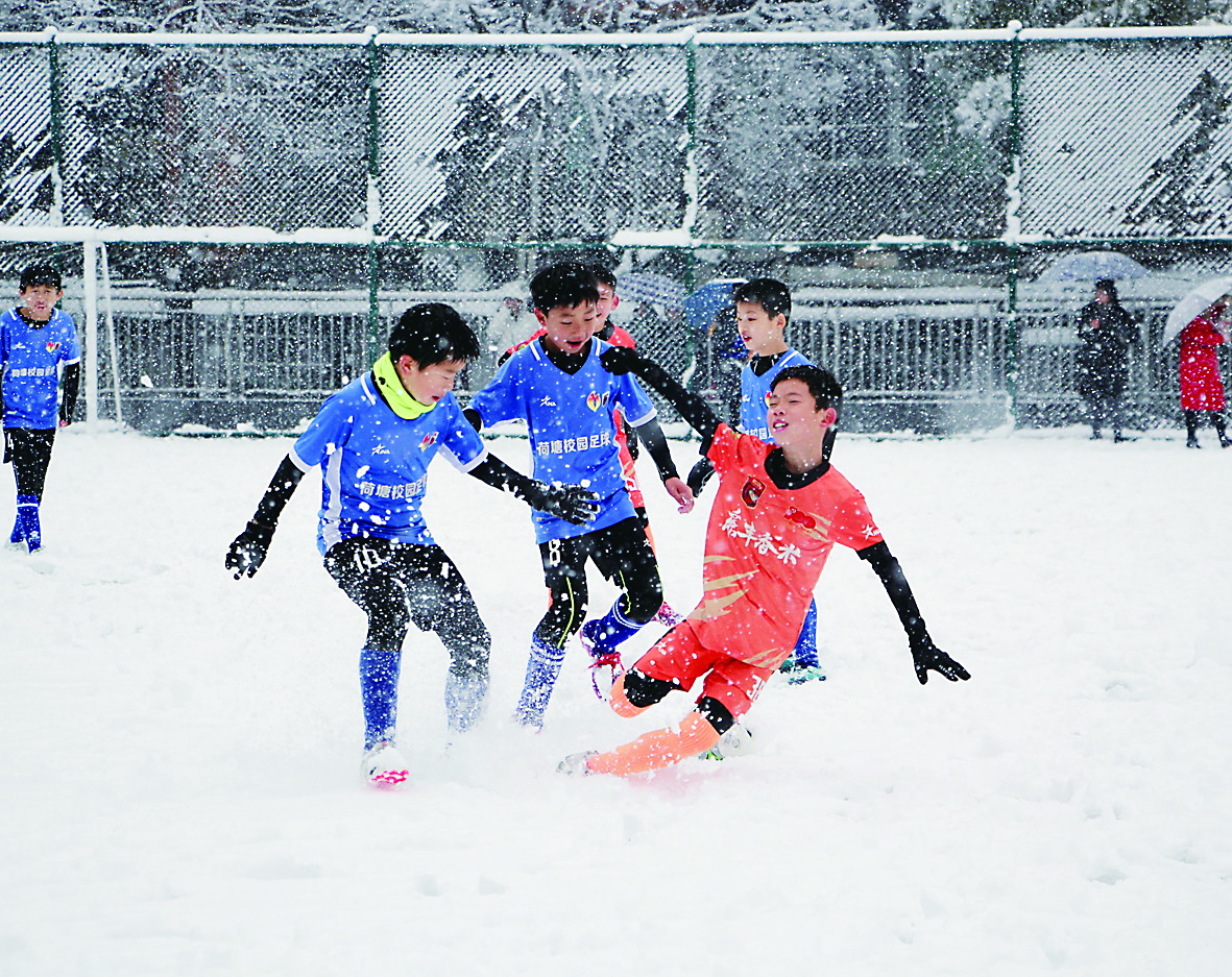 置身于冰天雪地中踢足球是什么场面?记者在比赛现场看到,一群身着单薄球衣的孩子们正在雪地球场上追赶着足球,全力奔跑、拼抢,足球快速从厚实的雪面上掠过。传球、运球、争顶、滑铲、远射…… 摔倒了爬起来,再继续你追我赶。没有一丝怯懦,没有一点娇气,始终保持着昂扬的斗志。