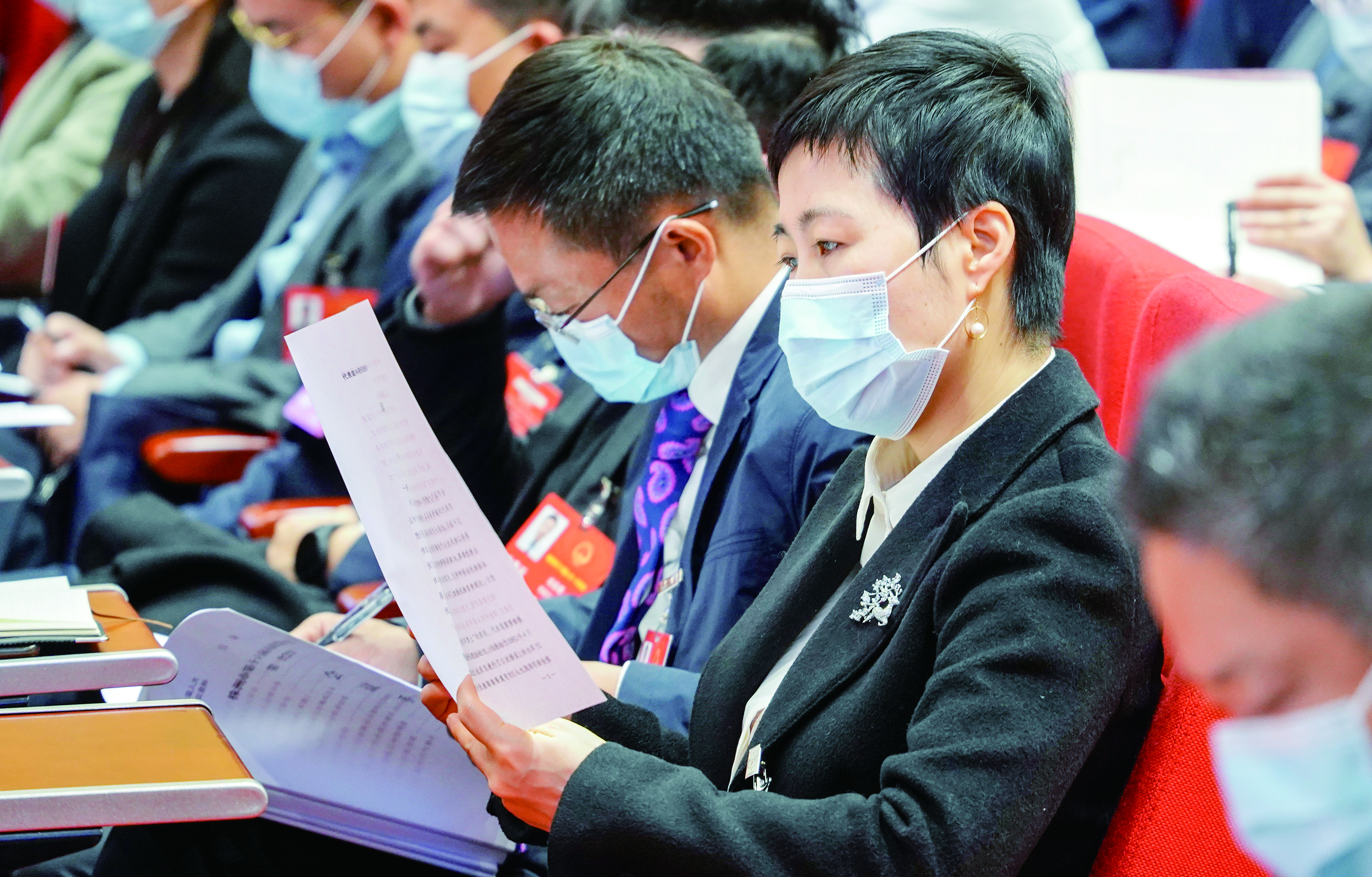 ▲12月29日,在市政府礼堂,人大代表培训会议现场,代表们在阅读资料。