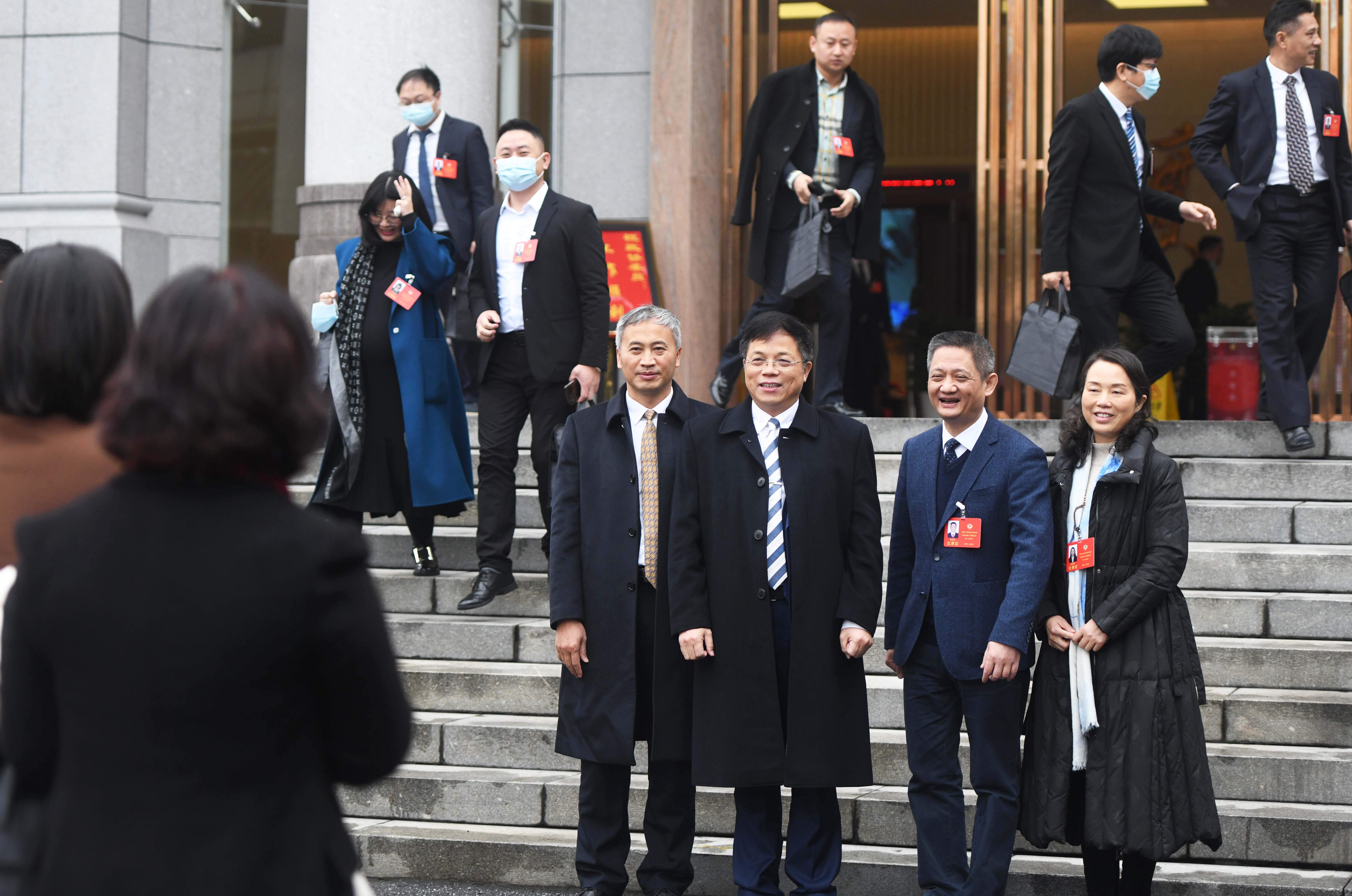 ▲12月29日,政协委员们在会场外合影留念。