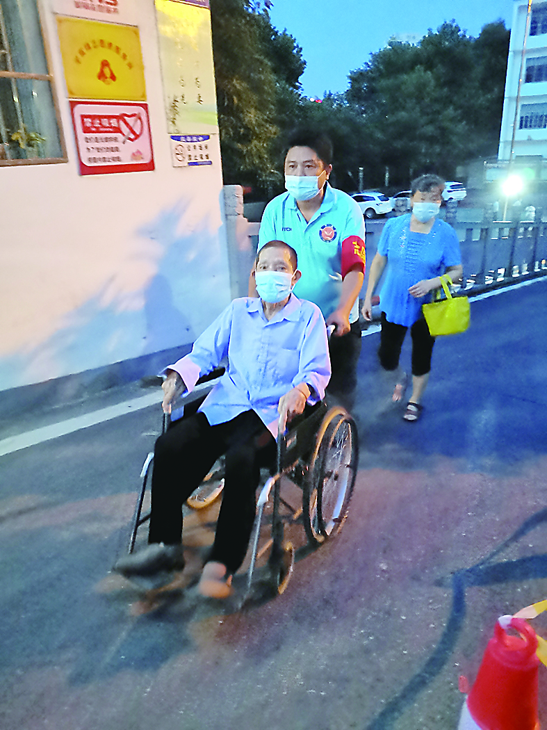 ▲今年8月初,郑毅在麻园社区参加疫情防控。 受访者 供图